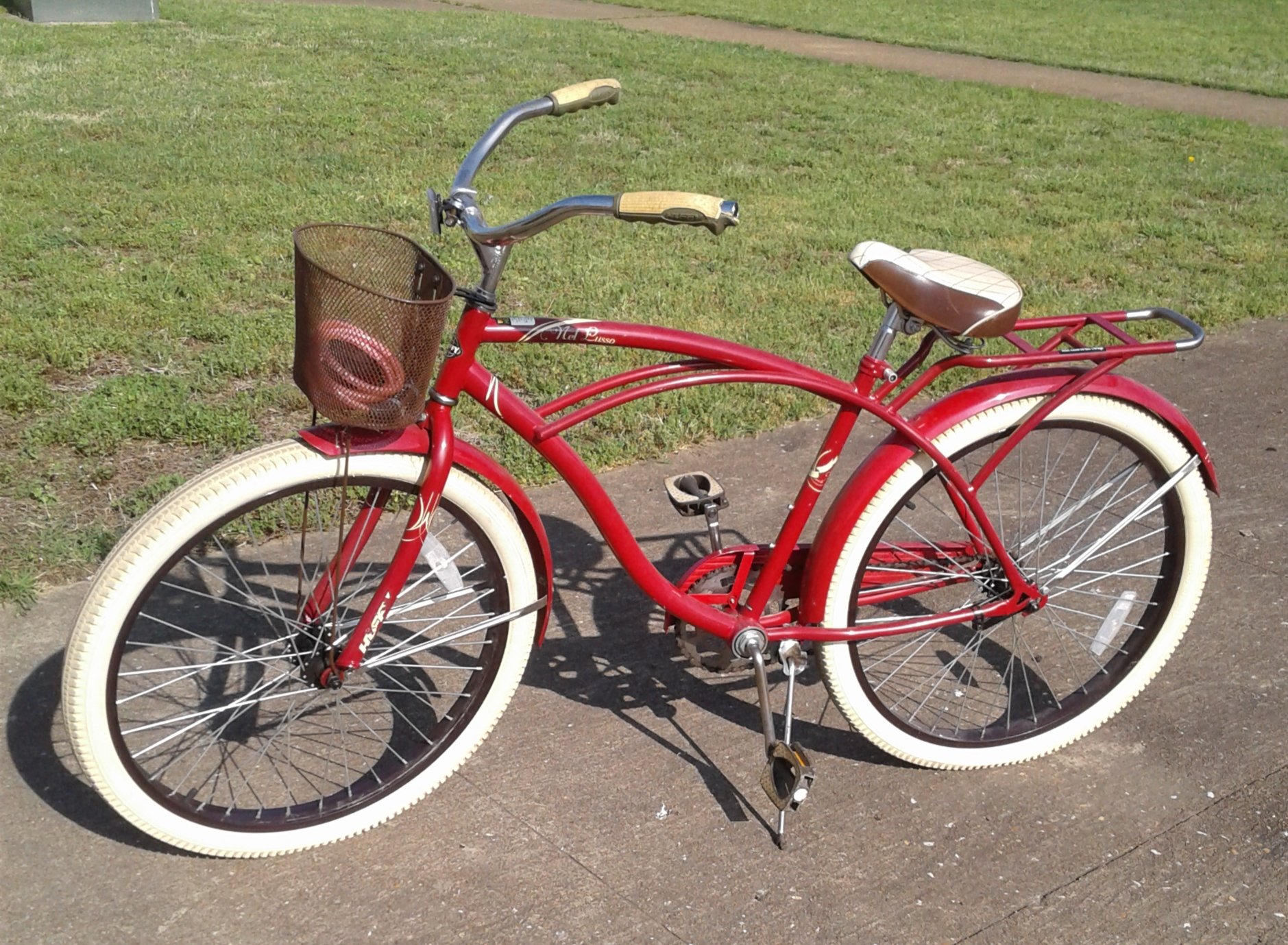 Not so many years ago, maybe 5, times had gotten really tough. My car had broken down the year before, and the car that used to be my great-grandmother’s finally left me on the side of the road. Resilience and determination are my strengths. Taking all of the cash I had that week which was less than $200, I paid a neighbor to take me to a particular super center to buy a bicycle for transportation and bring me home. The bicycle was a big, beautiful candy apple red with dark eggnog-colored trim and tires. It had a chocolate-colored wire basket in the front, two-toned handlebar grips and an adjustable rack on the back. The brand was a Huffy Nel Lusso- a real beauty. It rode reeeeeeeaaaaaally smoooooth.
